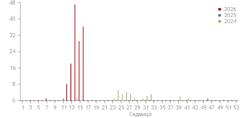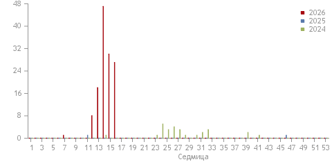 Current analysis of the weekly information on reported measles cases in BulgariaThe weekly data on reported infectious diseases are preliminary and are subject to verification and correction at the end of each month and year. The data are to be used only for the purposes of operational surveillance.