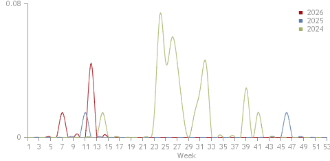 From the beginning of year the number of reported cases is 1. For the same period of the previous year the number of reported cases is 0. The deviation from the previous year is (1).
