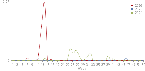 From the beginning of year the number of reported cases is 26. For the same period of the previous year the number of reported cases is 1. The deviation from the previous year is (25).