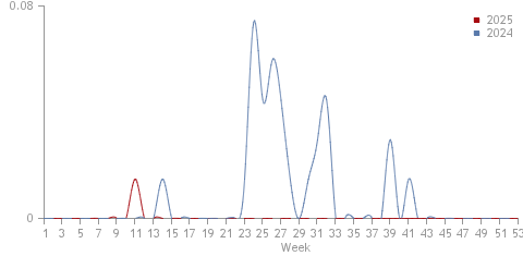 От началото на годината в страната е съобщен 1 случай. За същия период на предходната година са съобщени 27 случая. Отклонението от предходната година е -26 .