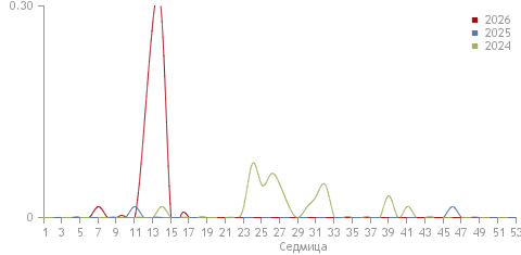 От началото на годината в страната са съобщени 26 случая. За същия период на предходната година е съобщен 1 случай. Отклонението от предходната година е 25 .